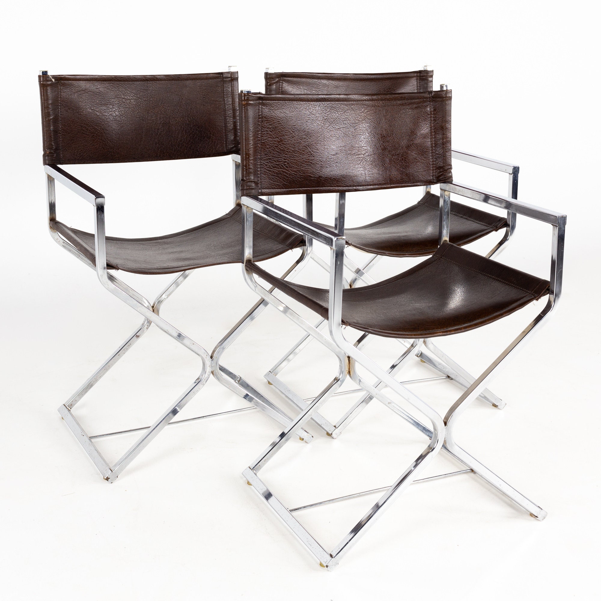 Leather And Chrome Directors Chairs Set Of 3 Etsy